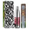 Τρίλιζα you won my heart, Πασχαλινή Λαμπάδα με μεταλλικό παγούρι θερμός ανοξείδωτο (500ml) & κερί αρωματικό πλακέ (30cm) (ΓΚΡΙ)
