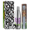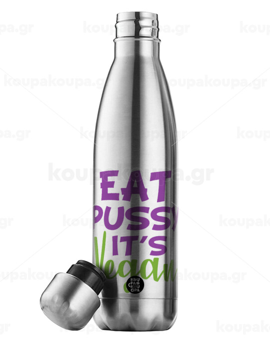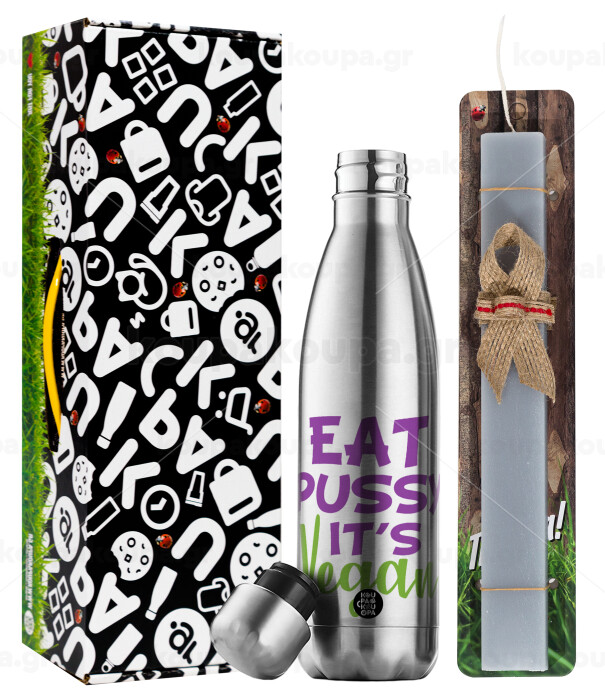 EAT pussy it's vegan, Πασχαλινή Λαμπάδα με μεταλλικό παγούρι θερμός ανοξείδωτο (500ml) & κερί αρωματικό πλακέ (30cm) (ΓΚΡΙ)