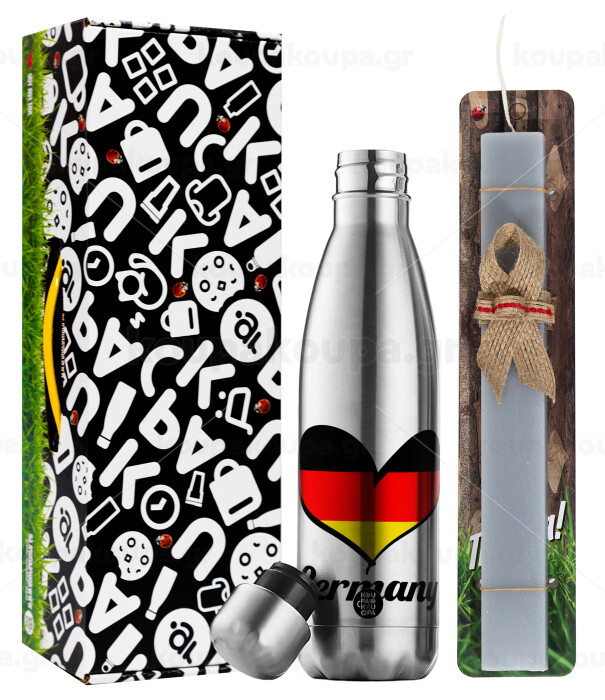 Germany flag, Πασχαλινή Λαμπάδα με μεταλλικό παγούρι θερμός ανοξείδωτο (500ml) & κερί αρωματικό πλακέ (30cm) (ΓΚΡΙ)