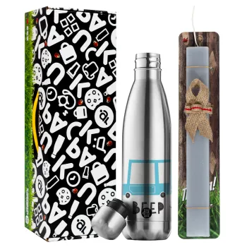 Car BEEP..., Πασχαλινή Λαμπάδα με μεταλλικό παγούρι θερμός ανοξείδωτο (500ml) & κερί αρωματικό πλακέ (30cm) (ΓΚΡΙ)