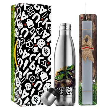 Extreme rider Dyno, Πασχαλινή Λαμπάδα με μεταλλικό παγούρι θερμός ανοξείδωτο (500ml) & κερί αρωματικό πλακέ (30cm) (ΓΚΡΙ)