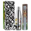 Hand drawing building truck, Πασχαλινή Λαμπάδα με μεταλλικό παγούρι θερμός ανοξείδωτο (500ml) & κερί αρωματικό πλακέ (30cm) (ΓΚΡΙ)