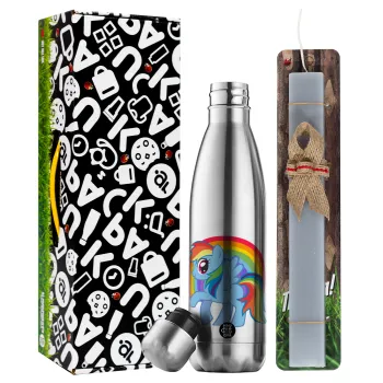 My Little Pony, Πασχαλινή Λαμπάδα με μεταλλικό παγούρι θερμός ανοξείδωτο (500ml) & κερί αρωματικό πλακέ (30cm) (ΓΚΡΙ)