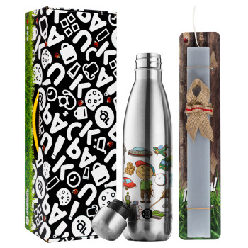 Sailor Moon star, Πασχαλινή Λαμπάδα με μεταλλικό παγούρι θερμός ανοξείδωτο (500ml) & κερί αρωματικό πλακέ (30cm) (ΓΚΡΙ)