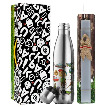 Toys Boy, Πασχαλινή Λαμπάδα με μεταλλικό παγούρι θερμός ανοξείδωτο (500ml) & κερί αρωματικό πλακέ (30cm) (ΓΚΡΙ)
