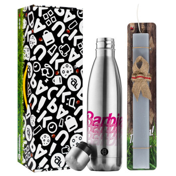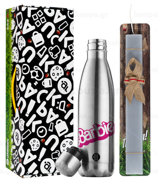 Barbie, Πασχαλινή Λαμπάδα με μεταλλικό παγούρι θερμός ανοξείδωτο (500ml) & κερί αρωματικό πλακέ (30cm) (ΓΚΡΙ)