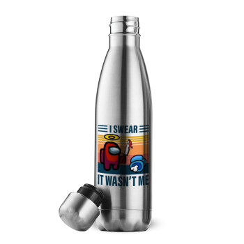 Among us, I swear it wasn't me, Πασχαλινή Λαμπάδα με μεταλλικό παγούρι θερμός ανοξείδωτο (500ml) & κερί αρωματικό πλακέ (30cm) (ΓΚΡΙ)