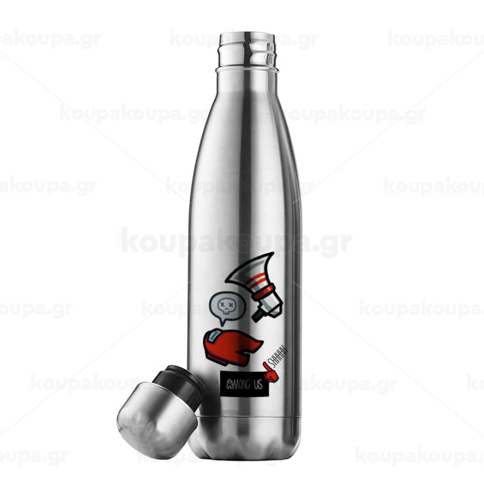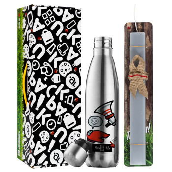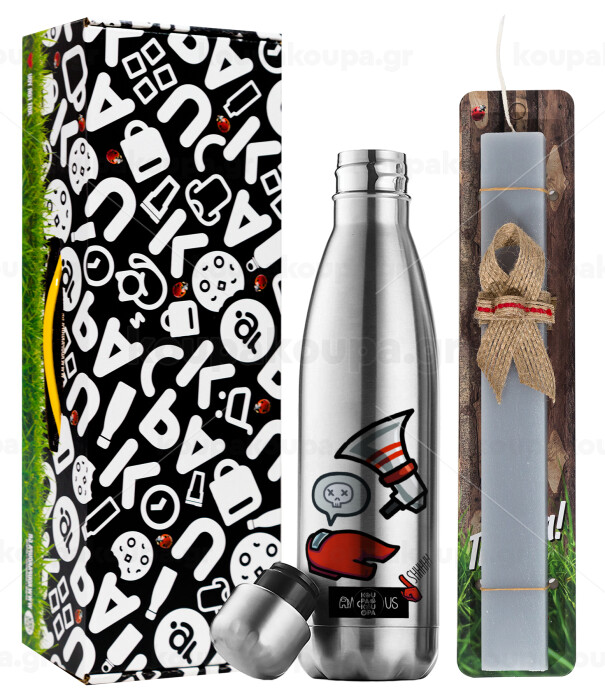 Among US Shhhh!!!, Πασχαλινή Λαμπάδα με μεταλλικό παγούρι θερμός ανοξείδωτο (500ml) & κερί αρωματικό πλακέ (30cm) (ΓΚΡΙ)
