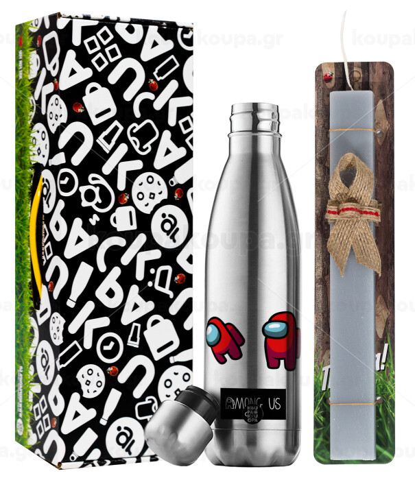 Among US, Πασχαλινή Λαμπάδα με μεταλλικό παγούρι θερμός ανοξείδωτο (500ml) & κερί αρωματικό πλακέ (30cm) (ΓΚΡΙ)