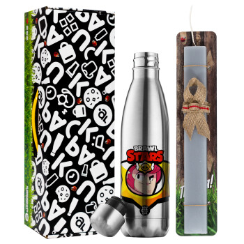 Brawl Stars Colt, Πασχαλινή Λαμπάδα με μεταλλικό παγούρι θερμός ανοξείδωτο (500ml) & κερί αρωματικό πλακέ (30cm) (ΓΚΡΙ)