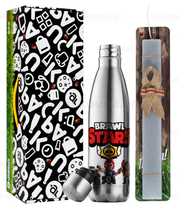 Brawl Stars Desert, Πασχαλινή Λαμπάδα με μεταλλικό παγούρι θερμός ανοξείδωτο (500ml) & κερί αρωματικό πλακέ (30cm) (ΓΚΡΙ)