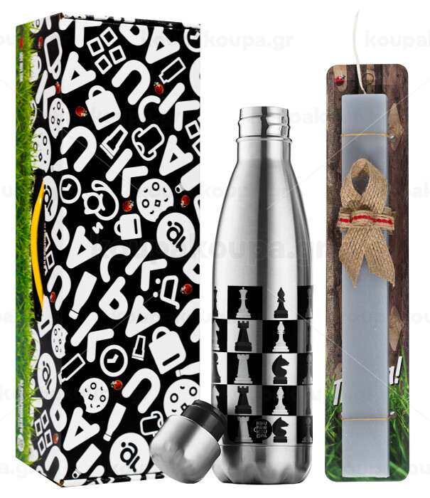 Chess set, Πασχαλινή Λαμπάδα με μεταλλικό παγούρι θερμός ανοξείδωτο (500ml) & κερί αρωματικό πλακέ (30cm) (ΓΚΡΙ)
