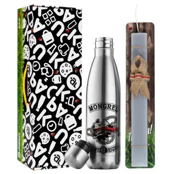 Day's Gone, mongrel farewell original, Πασχαλινή Λαμπάδα με μεταλλικό παγούρι θερμός ανοξείδωτο (500ml) & κερί αρωματικό πλακέ (30cm) (ΓΚΡΙ)