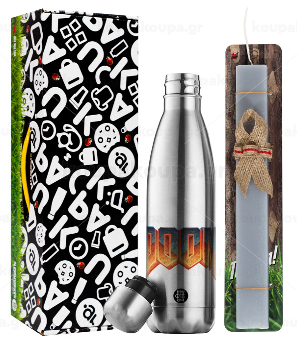 DOOM, Πασχαλινή Λαμπάδα με μεταλλικό παγούρι θερμός ανοξείδωτο (500ml) & κερί αρωματικό πλακέ (30cm) (ΓΚΡΙ)