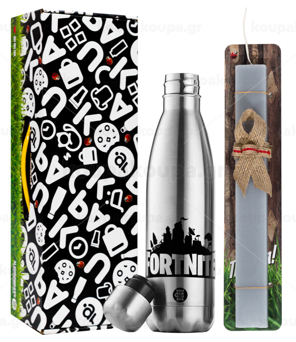 Fortnite, Πασχαλινή Λαμπάδα με μεταλλικό παγούρι θερμός ανοξείδωτο (500ml) & κερί αρωματικό πλακέ (30cm) (ΓΚΡΙ)