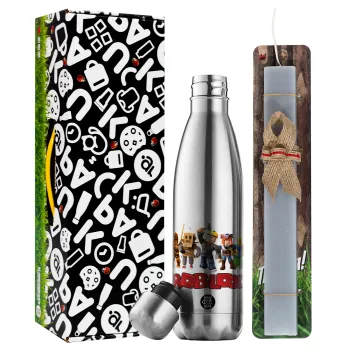 Roblox squad, Πασχαλινή Λαμπάδα με μεταλλικό παγούρι θερμός ανοξείδωτο (500ml) & κερί αρωματικό πλακέ (30cm) (ΓΚΡΙ)