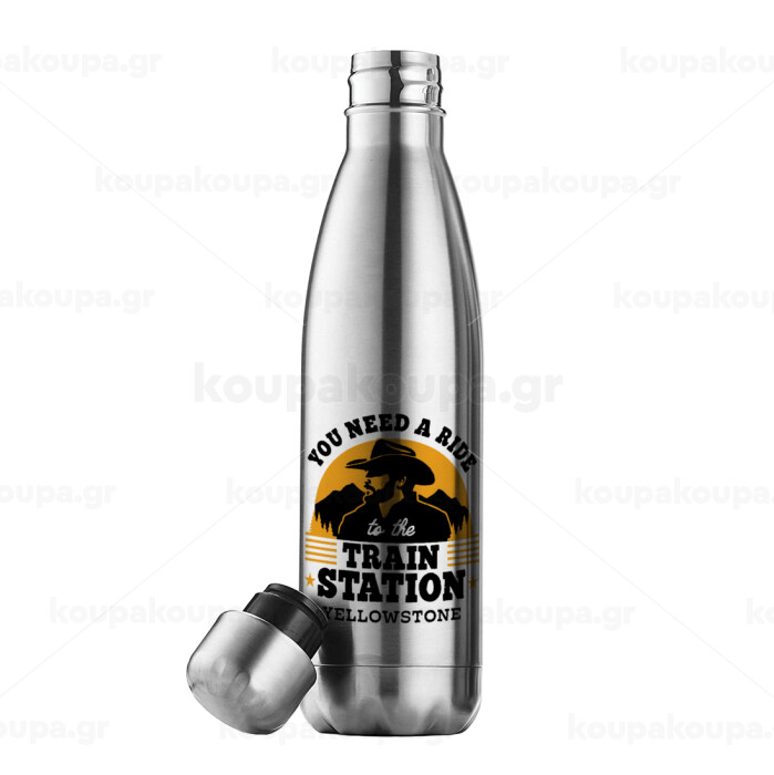 You need a ride to the train station, Πασχαλινή Λαμπάδα με μεταλλικό παγούρι θερμός ανοξείδωτο (500ml) & κερί αρωματικό πλακέ (30cm) (ΓΚΡΙ)