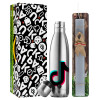 tik tok, Πασχαλινή Λαμπάδα με μεταλλικό παγούρι θερμός ανοξείδωτο (500ml) & κερί αρωματικό πλακέ (30cm) (ΓΚΡΙ)