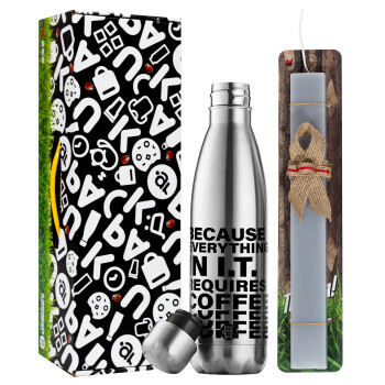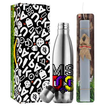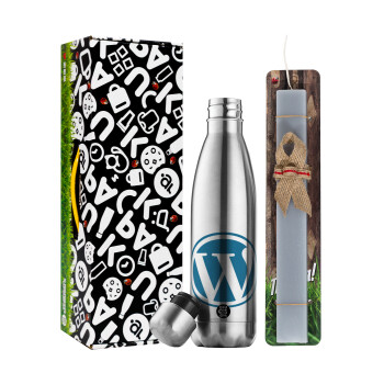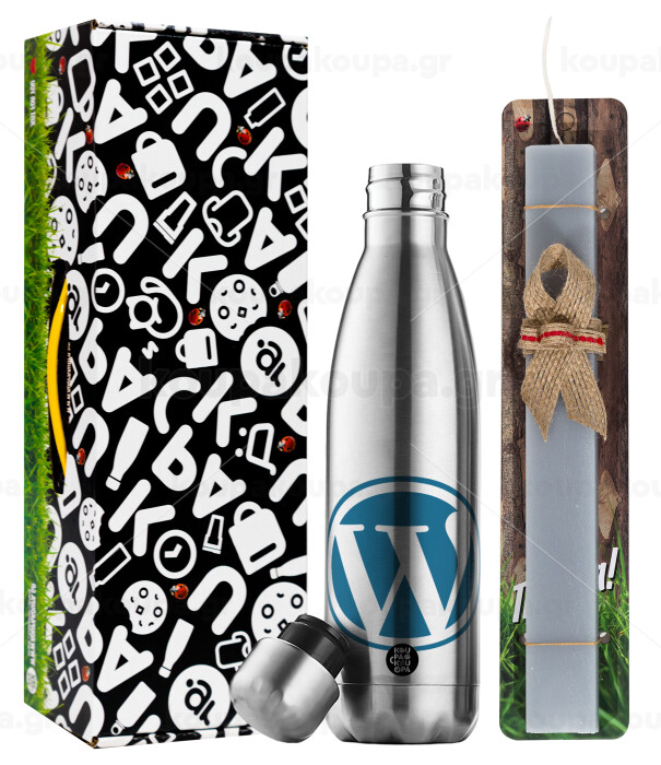 Wordpress, Πασχαλινή Λαμπάδα με μεταλλικό παγούρι θερμός ανοξείδωτο (500ml) & κερί αρωματικό πλακέ (30cm) (ΓΚΡΙ)