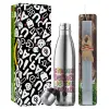 Delulu, Πασχαλινή Λαμπάδα με μεταλλικό παγούρι θερμός ανοξείδωτο (500ml) & κερί αρωματικό πλακέ (30cm) (ΓΚΡΙ)