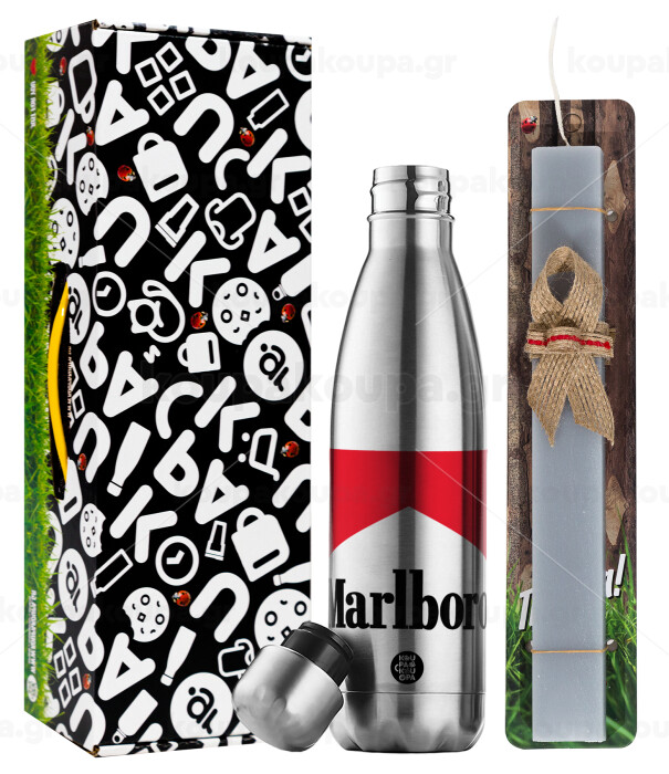Marlboro, Πασχαλινή Λαμπάδα με μεταλλικό παγούρι θερμός ανοξείδωτο (500ml) & κερί αρωματικό πλακέ (30cm) (ΓΚΡΙ)