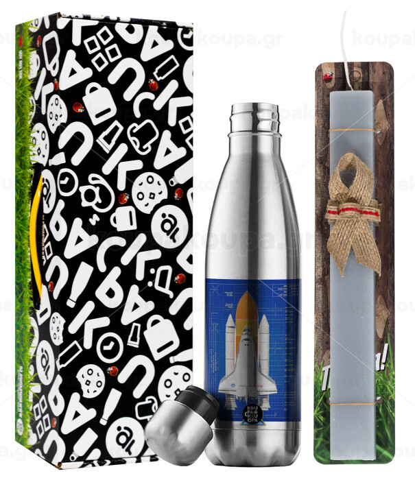 Nasa Space Shuttle, Πασχαλινή Λαμπάδα με μεταλλικό παγούρι θερμός ανοξείδωτο (500ml) & κερί αρωματικό πλακέ (30cm) (ΓΚΡΙ)