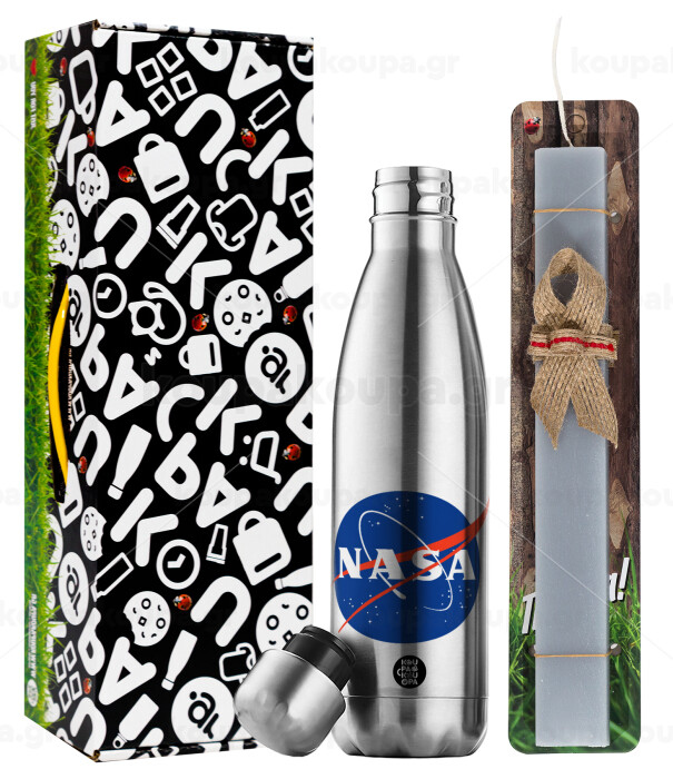 Nasa, Πασχαλινή Λαμπάδα με μεταλλικό παγούρι θερμός ανοξείδωτο (500ml) & κερί αρωματικό πλακέ (30cm) (ΓΚΡΙ)