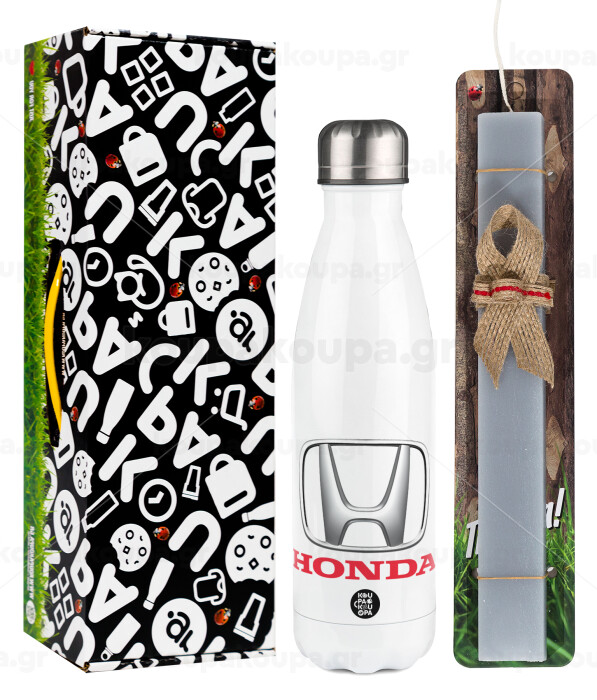 HONDA, Πασχαλινή Λαμπάδα με μεταλλικό παγούρι θερμός λευκός (500ml) & λαμπάδα αρωματική πλακέ (30cm) (ΓΚΡΙ)