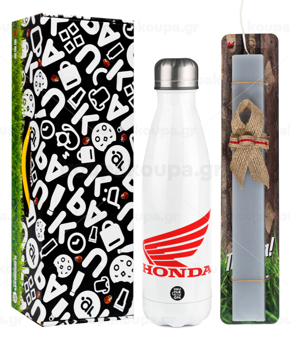 Honda, Πασχαλινή Λαμπάδα με μεταλλικό παγούρι θερμός λευκός (500ml) & λαμπάδα αρωματική πλακέ (30cm) (ΓΚΡΙ)