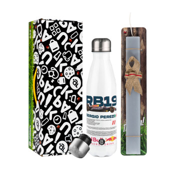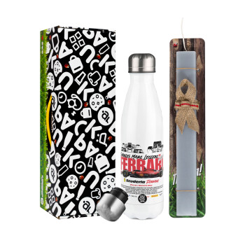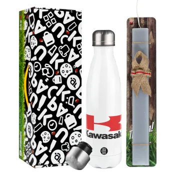 Kawasaki, Πασχαλινή Λαμπάδα με μεταλλικό παγούρι θερμός λευκός (500ml) & λαμπάδα αρωματική πλακέ (30cm) (ΓΚΡΙ)