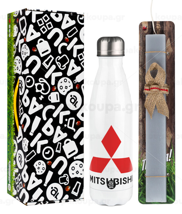 mitsubishi, Πασχαλινή Λαμπάδα με μεταλλικό παγούρι θερμός λευκός (500ml) & λαμπάδα αρωματική πλακέ (30cm) (ΓΚΡΙ)