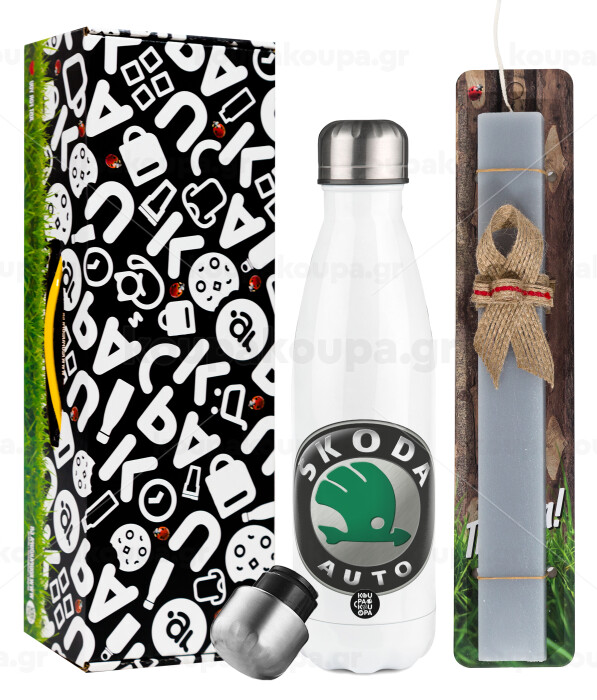 SKODA, Πασχαλινή Λαμπάδα με μεταλλικό παγούρι θερμός λευκός (500ml) & λαμπάδα αρωματική πλακέ (30cm) (ΓΚΡΙ)