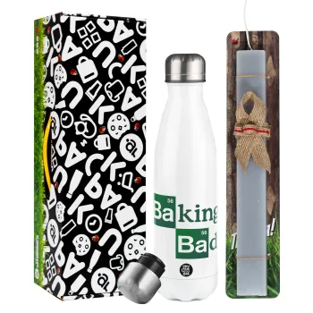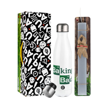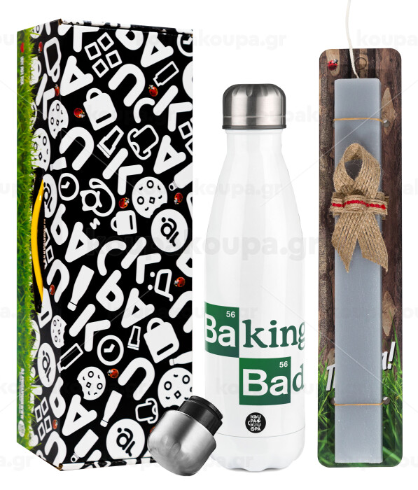 Baking Bad, Πασχαλινή Λαμπάδα με μεταλλικό παγούρι θερμός λευκός (500ml) & λαμπάδα αρωματική πλακέ (30cm) (ΓΚΡΙ)