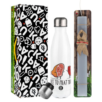 Nice to MEAT you, Πασχαλινή Λαμπάδα με μεταλλικό παγούρι θερμός λευκός (500ml) & λαμπάδα αρωματική πλακέ (30cm) (ΓΚΡΙ)