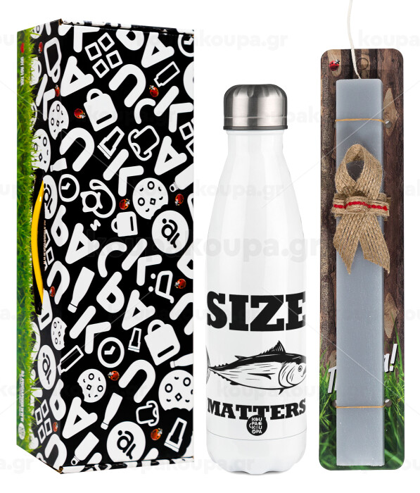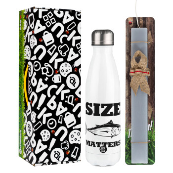 Size matters, Πασχαλινή Λαμπάδα με μεταλλικό παγούρι θερμός λευκός (500ml) & λαμπάδα αρωματική πλακέ (30cm) (ΓΚΡΙ)