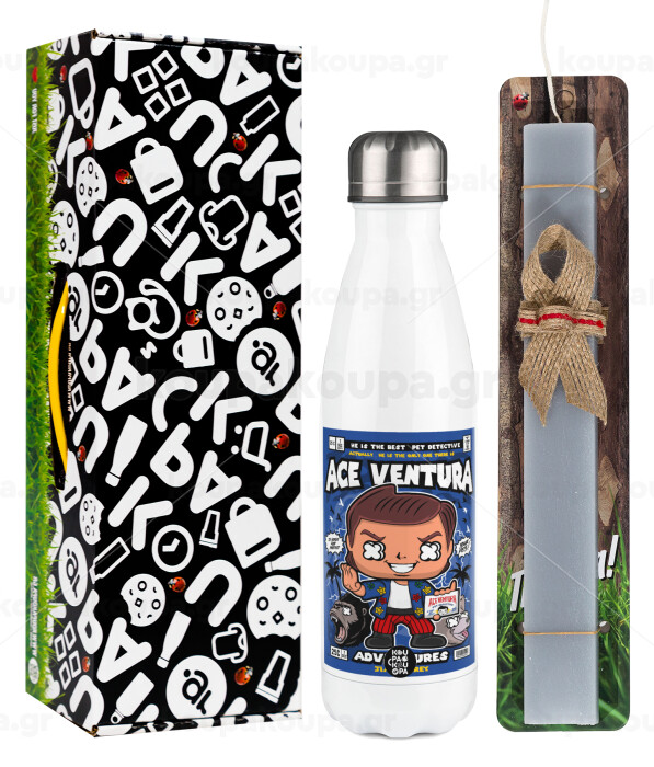 Ace Ventura: Pet Detective, Πασχαλινή Λαμπάδα με μεταλλικό παγούρι θερμός λευκός (500ml) & λαμπάδα αρωματική πλακέ (30cm) (ΓΚΡΙ)