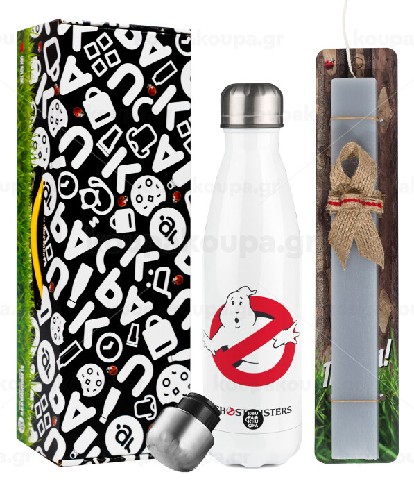 Ghostbusters, Πασχαλινή Λαμπάδα με μεταλλικό παγούρι θερμός λευκός (500ml) & λαμπάδα αρωματική πλακέ (30cm) (ΓΚΡΙ)