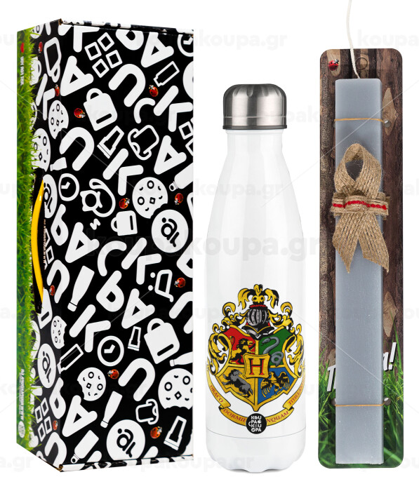 Hogwart's, Πασχαλινή Λαμπάδα με μεταλλικό παγούρι θερμός λευκός (500ml) & λαμπάδα αρωματική πλακέ (30cm) (ΓΚΡΙ)