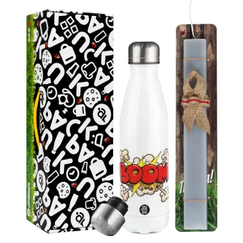 BOOM!!!, Πασχαλινή Λαμπάδα με μεταλλικό παγούρι θερμός λευκός (500ml) & λαμπάδα αρωματική πλακέ (30cm) (ΓΚΡΙ)