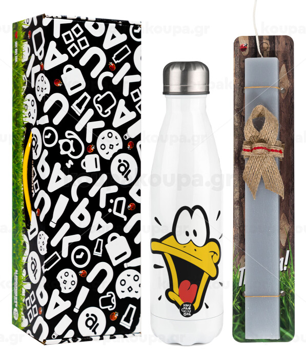 Daffy Duck, Πασχαλινή Λαμπάδα με μεταλλικό παγούρι θερμός λευκός (500ml) & λαμπάδα αρωματική πλακέ (30cm) (ΓΚΡΙ)