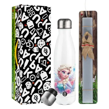 Elsa Princess, Πασχαλινή Λαμπάδα με μεταλλικό παγούρι θερμός λευκός (500ml) & λαμπάδα αρωματική πλακέ (30cm) (ΓΚΡΙ)