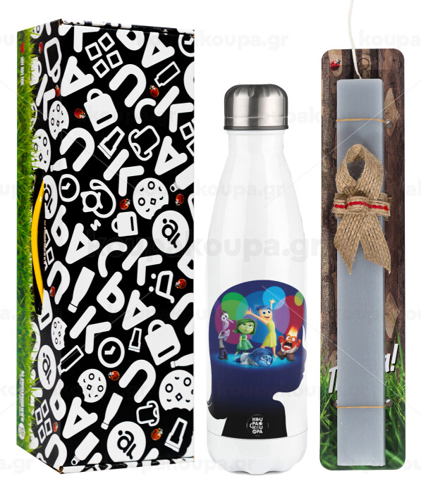 Τα Μυαλά που Κουβαλάς, Πασχαλινή Λαμπάδα με μεταλλικό παγούρι θερμός λευκός (500ml) & λαμπάδα αρωματική πλακέ (30cm) (ΓΚΡΙ)