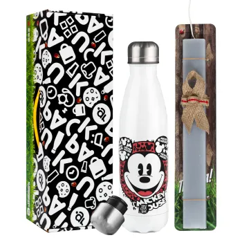 Mickey Mouse, Πασχαλινή Λαμπάδα με μεταλλικό παγούρι θερμός λευκός (500ml) & λαμπάδα αρωματική πλακέ (30cm) (ΓΚΡΙ)