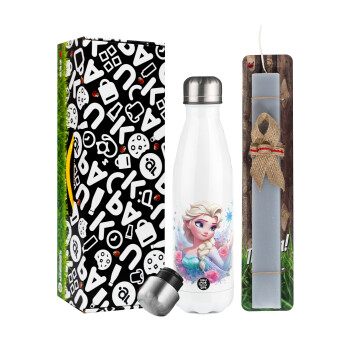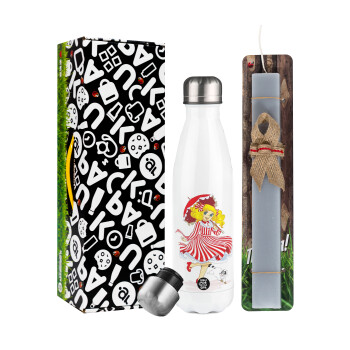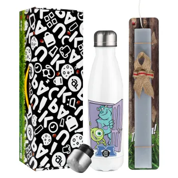 Monster inc, Πασχαλινή Λαμπάδα με μεταλλικό παγούρι θερμός λευκός (500ml) & λαμπάδα αρωματική πλακέ (30cm) (ΓΚΡΙ)