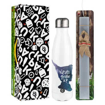 Never Grow UP, Πασχαλινή Λαμπάδα με μεταλλικό παγούρι θερμός λευκός (500ml) & λαμπάδα αρωματική πλακέ (30cm) (ΓΚΡΙ)