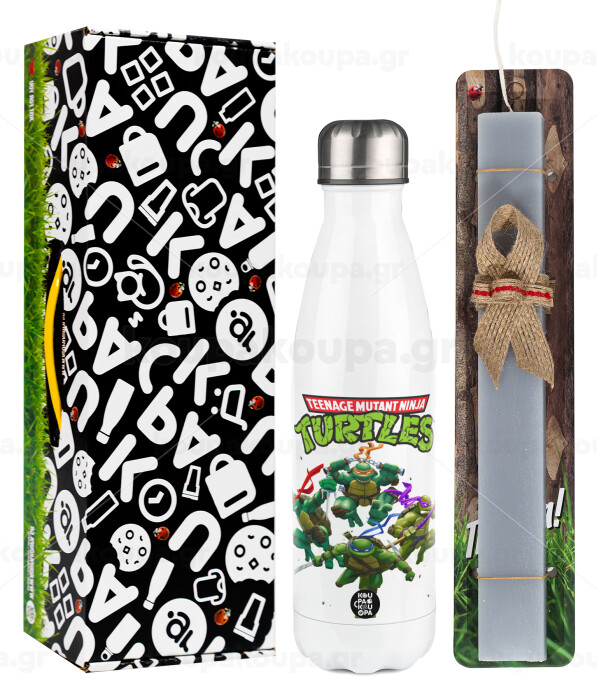 Ninja turtles, Πασχαλινή Λαμπάδα με μεταλλικό παγούρι θερμός λευκός (500ml) & λαμπάδα αρωματική πλακέ (30cm) (ΓΚΡΙ)