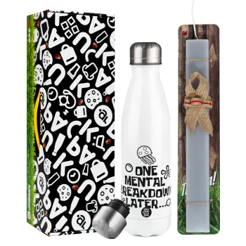 one mental breakdown later bob spongebob, Πασχαλινή Λαμπάδα με μεταλλικό παγούρι θερμός λευκός (500ml) & λαμπάδα αρωματική πλακέ (30cm) (ΓΚΡΙ)