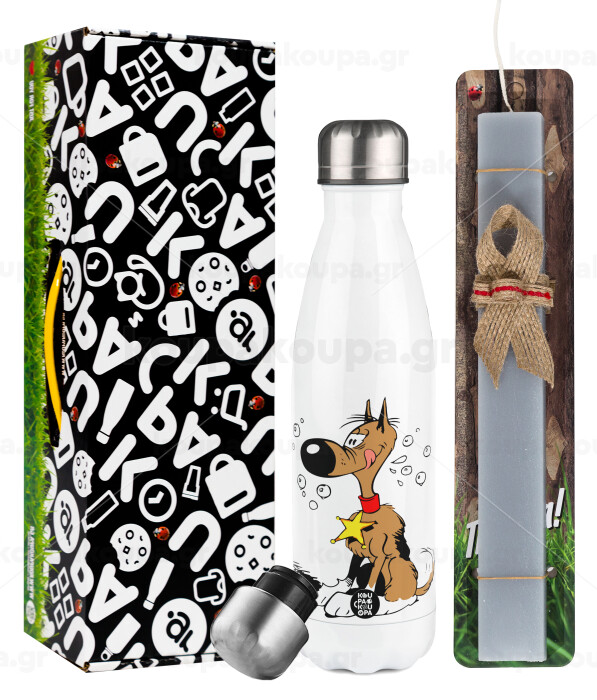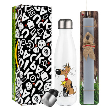 Rantanplan (Ρανταπλάν), Πασχαλινή Λαμπάδα με μεταλλικό παγούρι θερμός λευκός (500ml) & λαμπάδα αρωματική πλακέ (30cm) (ΓΚΡΙ)