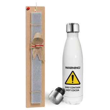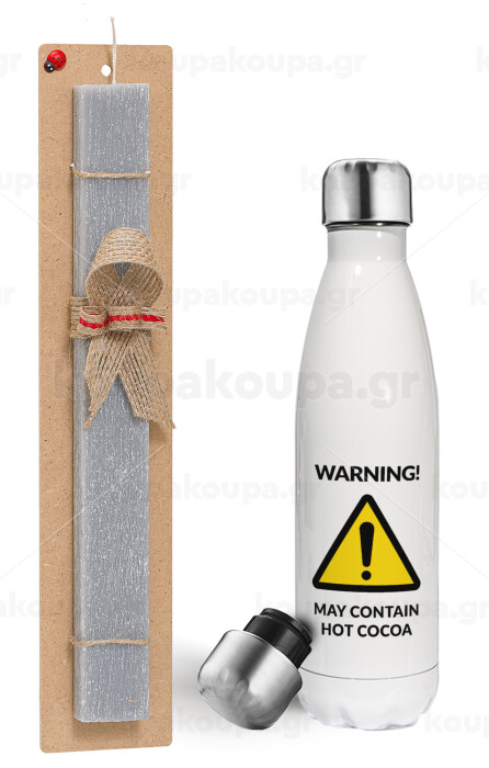 WARNING MAY CONTAIN HOT COCOA MUG PADDINGTON, Πασχαλινή Λαμπάδα με μεταλλικό παγούρι θερμός λευκός (500ml) & λαμπάδα αρωματική πλακέ (30cm) (ΓΚΡΙ)