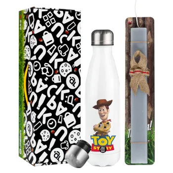 Woody cowboy, Πασχαλινή Λαμπάδα με μεταλλικό παγούρι θερμός λευκός (500ml) & λαμπάδα αρωματική πλακέ (30cm) (ΓΚΡΙ)